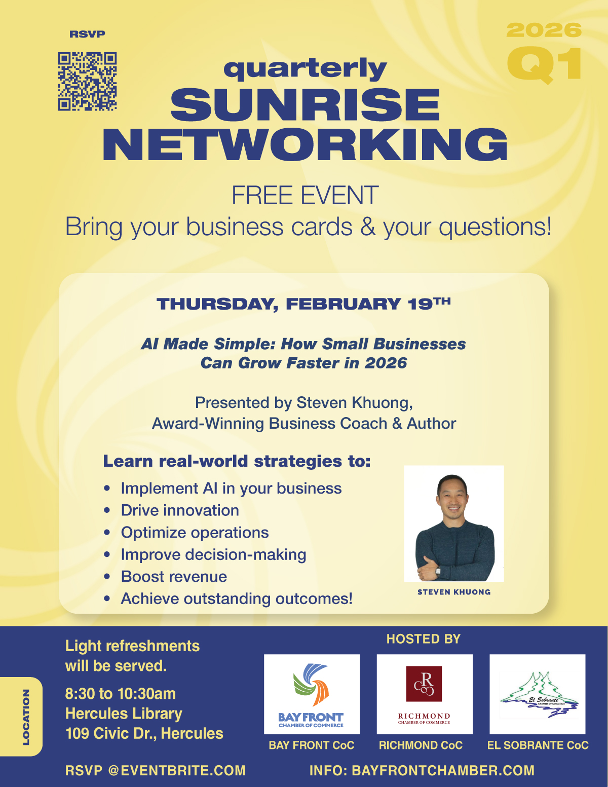 The El Sobrante Chamber of Commerce helps develop, encourage, promote, and protect the commercial and general business interests of the community.
